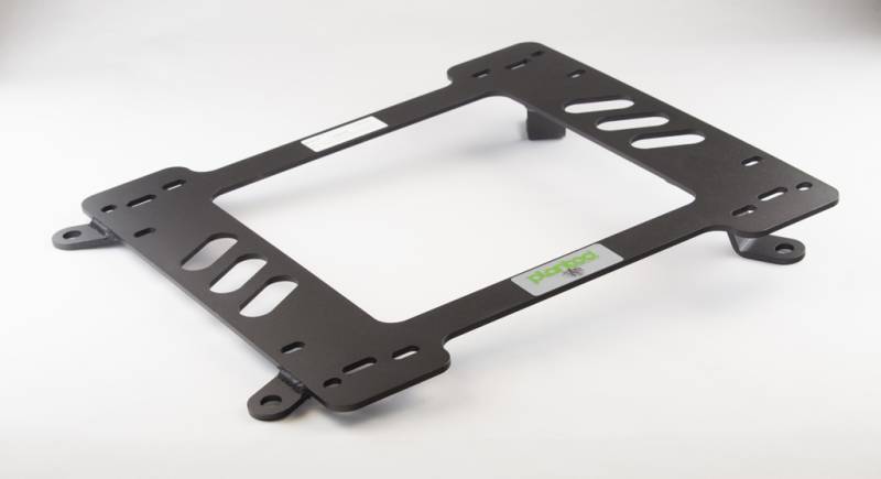 Planted Seat Brackets are laser cut from 3/16 inch thick steel and hand welded to ensure weld penetration for superior strength. Each bracket is pre-slotted with hole patterns to accept sliders from most major seat manufacturers like Bride*, Cipher Auto, Cobra**, Corbeau, OMP, Momo, NRG, Racetech, Recaro, Sparco, Status Racing, Takata and more. There is extra space on the bracket for drilling your own hole pattern if using a slider with a less common hole pattern, or direct mounting a seat or side mount when eliminating sliders is preferred. They are finished with a black powder coat and applications are available for many vehicles.