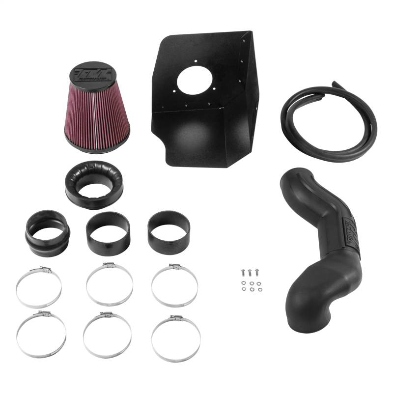 Delta Force Cold Air Intake Kit; Incl. Polyethylene Tubing/Air Dam/Red Cone Filter/Silicone Couplers/Stainless Steel Hardware; Black Powdercoat;