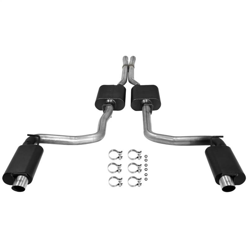 Force II Cat Back System; Dual; Dual Rear Exit; Incl. 2.5 in. Outlet/Super 44 Series Mufflers/Scavenger X-Pipe/Tailpipe w/Resonators/Brushed Stainless Tips; 409 Stainless Steel;