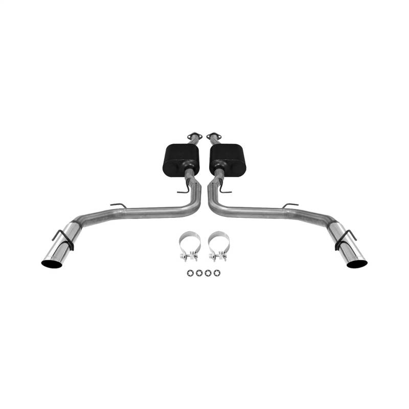 For the person who wants the look of a traditional dual exhaust system with all the benefits that a Flowmaster Cat-back exhaust system provides. This dual out American Thunder cat-back exhaust system is the perfect choice with a 2.50-inch flanged pipe connecting directly to the catalytic converters, the mandrel-bent aluminized steel inlet tubes flow into a large case Super 40 Series performance mufflers for a deep powerful sound. The system uses the factory hanger locations for an easy installation and features dual 2.50-inch mandrel-bent tailpipes exiting out the back and are finished off with dual 3.00-inch polished stainless steel tips for a muscular look and sound. American Thunder systems deliver a moderate to aggressive exterior tone with a mild-moderate interior tone and are best suited for the enthusiast who wants their performance to be heard. Like all Flowmaster systems, the benefits include improved throttle response, power and mileage. Designed for an easy fit, these systems include all necessary parts and hardware for easy installation. Comes with our 3-year Limited Warranty. If you prefer a full stainless steel exhaust system with a Lifetime Limited Warranty, check out system #817248.