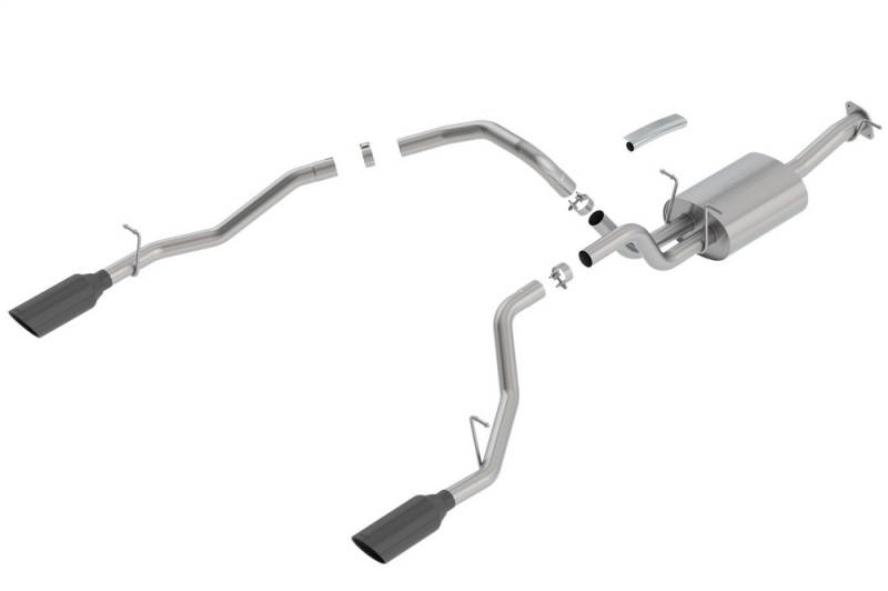 Borla Cat-Back And Axle-Back multi-core technology to unleash hidden horsepower. Increased exhaust velocity adds power, driving excitement, fuel economy, and the distinctive Borla Sound of Power respected by motoring enthusiasts everywhere. Each system is built from premium T-304 stainless steel, superior to T-400 series knockoffs (such as 409), to give you the absolute best in performance and durability. Ultra-smooth mandrel bends ensure maximum flow & power, and precision computer-controlled CNC manufacturing ensures an accurate fit. Best of all, Borla stands behind every system with a Million-Mile Warranty. Just what you?d expect from the world?s most experienced (and most winning) exhaust brand.