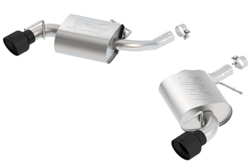 Borla Cat-Back And Axle-Back multi-core technology is designed to unleash hidden horsepower. Increased exhaust velocity adds power, driving excitement, fuel economy, and the distinctive Borla Sound of Power respected by motoring enthusiasts everywhere. Each system is built from premium T-304 stainless steel, superior to T-400 series knockoffs (such as 409), to give you the absolute best in performance and durability. Ultra-smooth mandrel bends ensure maximum flow & power, and precision computer-controlled CNC manufacturing ensures an accurate fit. Best of all, Borla stands behind every system with a Million-Mile Warranty. Just what you?d expect from the world?s most experienced (and most winning) exhaust brand. This system features a high-temperature Ceramic Black finish on the tips.