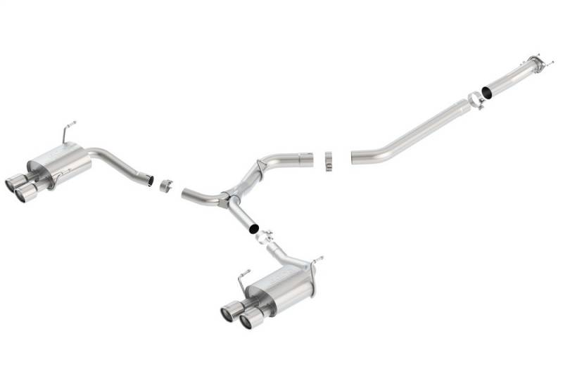 Borla Cat-Back And Axle-Back multi-core technology to unleash hidden horsepower. Increased exhaust velocity adds power, driving excitement, fuel economy, and the distinctive Borla Sound of Power respected by motoring enthusiasts everywhere. Each system is built from premium T-304 stainless steel, superior to T-400 series knockoffs (such as 409), to give you the absolute best in performance and durability. Ultra-smooth mandrel bends ensure maximum flow & power, and precision computer-controlled CNC manufacturing ensures an accurate fit. Best of all, Borla stands behind every system with a Million-Mile Warranty. Just what you?d expect from the world?s most experienced (and most winning) exhaust brand.