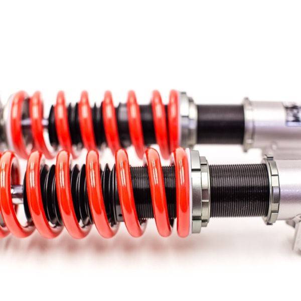 Godspeed Project's MonoRS is our one entity in our family of single-adjustable coilover suspension kits. These coilovers are designed to be a streetable race built coilover at an affordable price. It features a monotube damper that is made out of a carbon seamless steel 52mm tube with a performance internal piston providing maximum damper response. The cold-bent springs are made from high strength SAE9252 steel to optimize the balance between performance and comfort. Using race quality shock oil, Godspeed Project can guarantee exceptional damper performance at any temperature on and off the track. The top of the shock is attached to the car using a high quality top hat that features a high performance Japanese KOYO 6204Z bearing pillow ball mount (when applicable). The bottom shock brackets are made out of a T7075 forged aluminum or carbon steel brackets for lighter weight without sacrificing durability which also includes brake line brackets (when applicable). The MonoRS offers 32 level of damper adjustability which can be set to your preference.