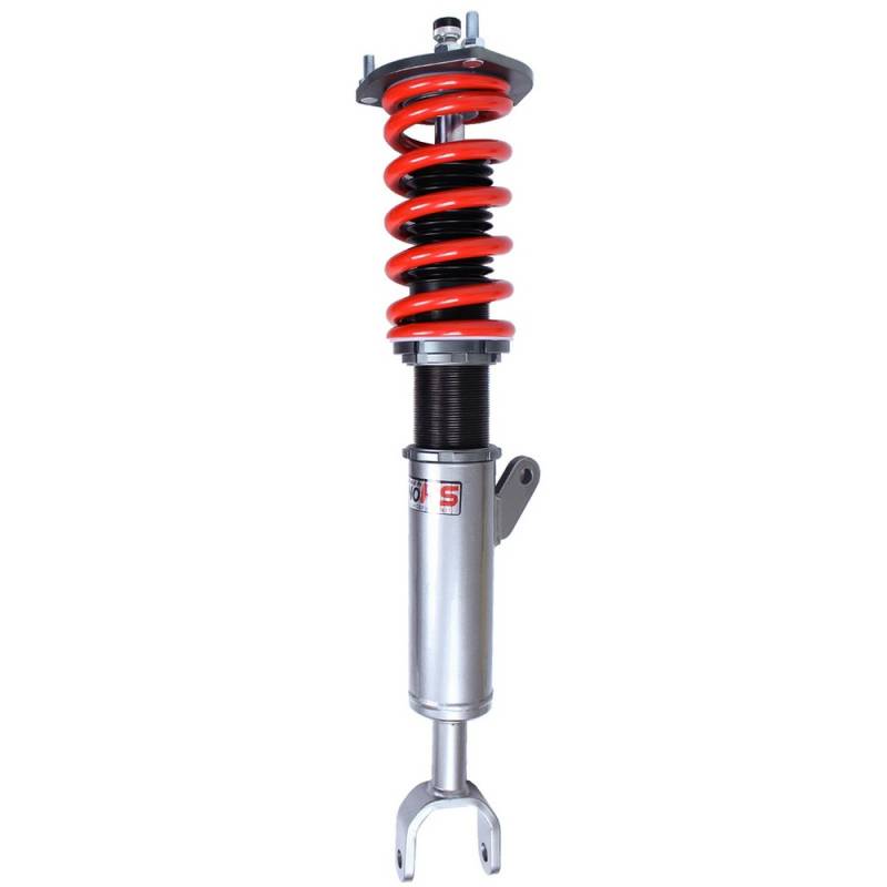 Godspeed Project's MonoRS is our one entity in our family of single-adjustable coilover suspension kits. These coilovers are designed to be a streetable race built coilover at an affordable price. It features a monotube damper that is made out of a carbon seamless steel 52mm tube with a performance internal piston providing maximum damper response. The cold-bent springs are made from high strength SAE9252 steel to optimize the balance between performance and comfort. Using race quality shock oil, Godspeed Project can guarantee exceptional damper performance at any temperature on and off the track. The top of the shock is attached to the car using a high quality top hat that features a high performance Japanese KOYO 6204Z bearing pillow ball mount (when applicable). The bottom shock brackets are made out of a T7075 forged aluminum or carbon steel brackets for lighter weight without sacrificing durability which also includes brake line brackets (when applicable). The MonoRS offers 32 level of damper adjustability which can be set to your preference.