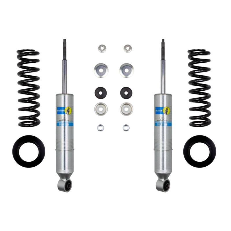 Bilstein B8 6112 leveling kits are designed to provide more ground clearance allow for larger tires and increase wheel travel. Multiple snap-ring grooves in the body allow for different spring seat positions providing 0-2.75 inches of front lift (depending on application). These kits consist of (2) 60mm shock absorbers combined with (2) custom matched cold wound coil springs and (2) billet aluminum spring seats. The large 60mm digressive piston allows for increased damping control for optimal on-road and off-road capabilities. Experience the legendary Bilstein off-road experience with the best direct fit spring and shock kit for your light truck or SUV.
