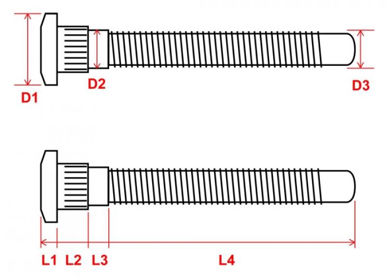 Overall dimension of stud (see diagram)
