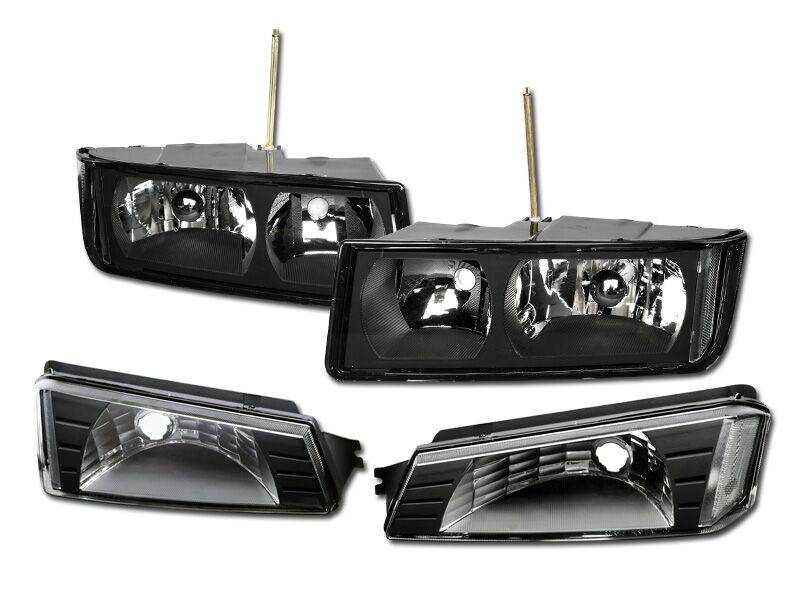 I3 2002-2006 Chevy Avalanche - Oem Crystal Headlight - Body Cladding Model Only - 4 Pcs Set W/O Amber W/O Bulb -Black