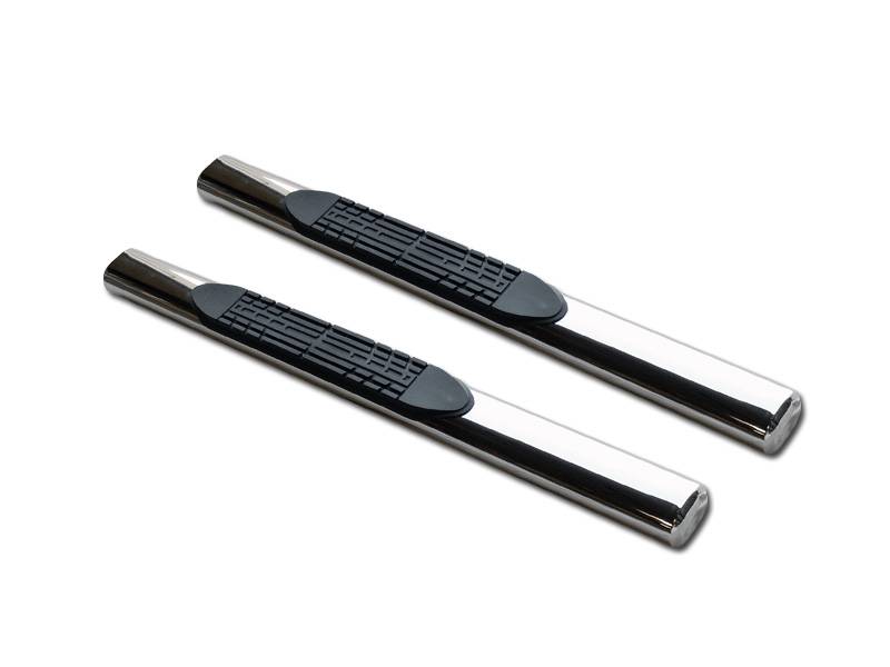 Our Round and Oval style side step bars is precision designed for the specific vehicle, to guarantee a perfect fit. They're manufactured in Powder Coat or Stainless Steel finish in both 3-inch, 4-inch and 5-inch diameters, for all cab lengths and wheel-to-wheel lengths. The tubes are mandrel-bent, to ensure quality and consistent shape. And each tube comes equipped with non-slip U.V. resistant step pad areas, to make sure wet or muddy boots won't skid.