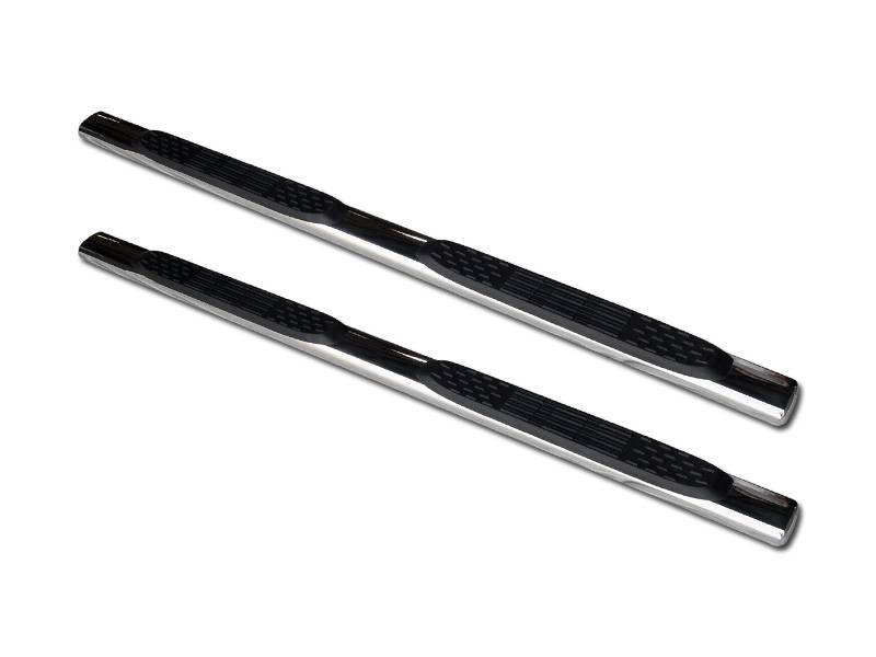 Our Round and Oval style side step bars is precision designed for the specific vehicle, to guarantee a perfect fit. They're manufactured in Powder Coat or Stainless Steel finish in both 3-inch, 4-inch and 5-inch diameters, for all cab lengths and wheel-to-wheel lengths. The tubes are mandrel-bent, to ensure quality and consistent shape. And each tube comes equipped with non-slip U.V. resistant step pad areas, to make sure wet or muddy boots won't skid.