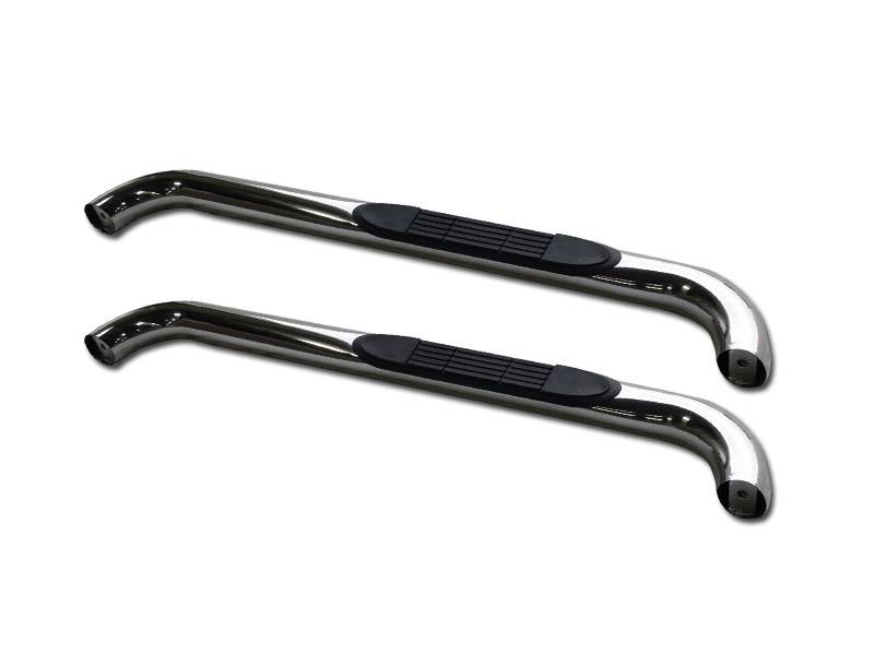 Our Round and Oval style side step bars is precision designed for the specific vehicle, to guarantee a perfect fit. They're manufactured in Powder Coat or Stainless Steel finish in both 3-inch, 4-inch and 5-inch diameters, for all cab lengths and wheel-to-wheel lengths. The tubes are mandrel-bent, to ensure quality and consistent shape. And each tube comes equipped with non-slip U.V. resistant step pad areas, to make sure wet or muddy boots won't skid.
