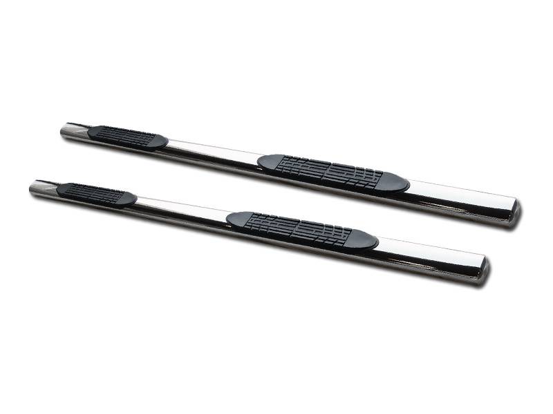 Our Round and Oval style side step bars is precision designed for the specific vehicle, to guarantee a perfect fit. They're manufactured in Powder Coat or Stainless Steel finish in both 3-inch, 4-inch and 5-inch diameters, for all cab lengths and wheel-to-wheel lengths. The tubes are mandrel-bent, to ensure quality and consistent shape. And each tube comes equipped with non-slip U.V. resistant step pad areas, to make sure wet or muddy boots won't skid.