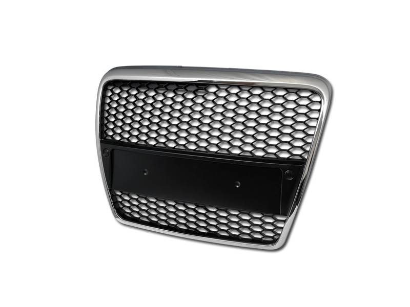 05-07 AUDI A6 RS STYLE HONEYCOMB MESH FRONT GRILL W/LOGO BASE (CHROME/BLACK)