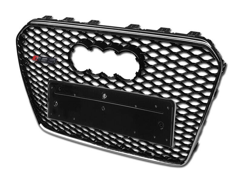 I3 13-16 Audi A5 Rs Style Honeycomb Front Grill W/Emblem Base (Black W/Chrome Trim)