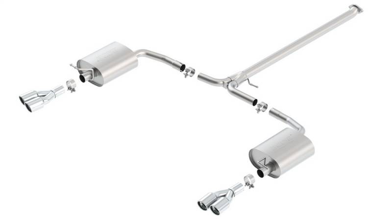 Borla Cat-Back And Axle-Back multi-core technology to unleash hidden horsepower. Increased exhaust velocity adds power, driving excitement, fuel economy, and the distinctive Borla Sound of Power respected by motoring enthusiasts everywhere. Each system is built from premium T-304 stainless steel, superior to T-400 series knockoffs (such as 409), to give you the absolute best in performance and durability. Ultra-smooth mandrel bends ensure maximum flow & power, and precision computer-controlled CNC manufacturing ensures an accurate fit. Best of all, Borla stands behind every system with a Million-Mile Warranty. Just what you?d expect from the world?s most experienced (and most winning) exhaust brand.