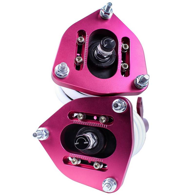 Godspeed Project's MonoSS is our one entity in our family of single-adjustable coilover suspension kits. These coilovers are designed to be a streetable race built coilover at an affordable price. It features a monotube damper that is made out of a carbon seamless steel 52mm tube with a performance internal piston providing maximum damper response. The cold-bent springs are made from high strength SAE9252 steel to optimize the balance between performance and comfort. Using race quality shock oil, Godspeed Project can guarantee exceptional damper performance at any temperature on and off the track. The top of the shock is attached to the car using a high quality top hat that features a high performance Japanese KOYO 6204Z bearing pillow ball mount (when applicable). The bottom shock brackets are made out of a T7075 forged aluminum or carbon steel brackets for lighter weight without sacrificing durability which also includes brake line brackets (when applicable). The MonoSS offers 16 level of damper adjustability which can be set to your preference.