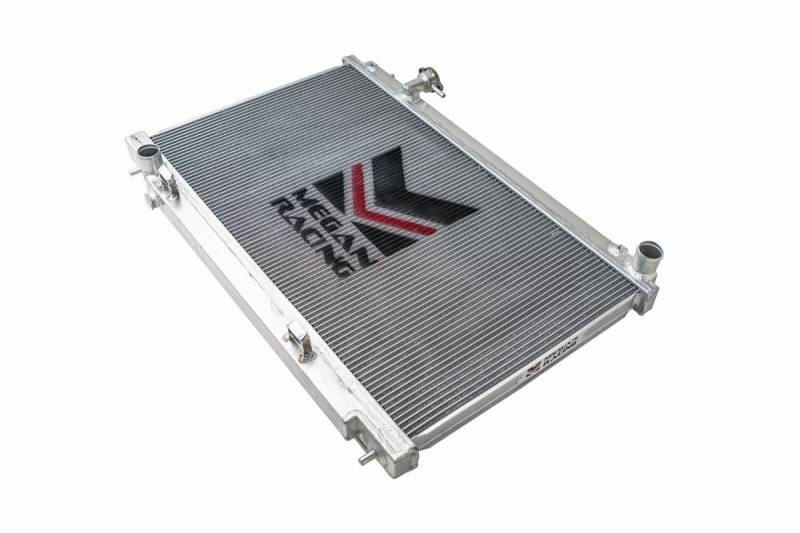 We are proud to introduce the new Megan Racing high performance aluminum radiator. Anytime an individual introduces their car to a racing/drifting environment, the temperature of the vehicles engine will skyrocket. One common and effective method of reducing engine temperature is to employ an aluminum radiator. This is a cost effective upgrade which can ultimately save an engine during competition or spirited driving. Often times, a temperature drop of twenty degrees or more will be noticed when using an aluminum radiator. Also included is a 1.1 BAR radiator cap.