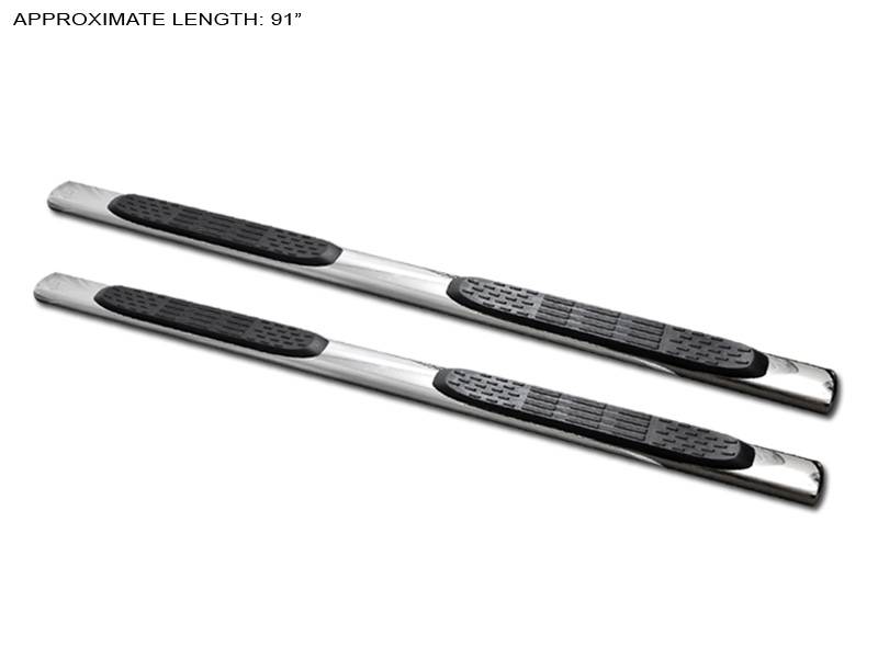 Our Round and Oval style side step bars is precision designed for the specific vehicle, to guarantee a perfect fit. They're manufactured in Powder Coat or Stainless Steel finish in both 3-inch, 4-inch and 5-inch diameters, for all cab lengths and wheel-to-wheel lengths. The tubes are mandrel-bent, to ensure quality and consistent shape. And each tube comes equipped with non-slip U.V. resistant step pad areas, to make sure wet or muddy boots won't skid.