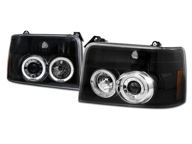 I3 92-96 Ford F150/F250/F350/Bronco Halo Projector Headlights W/Amber 1Pc (Jdm Black)