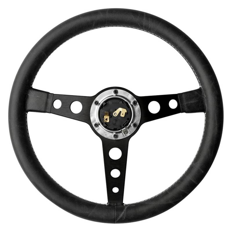 MOMO - PRH35BK2B - HERITAGE PROTOTIPO, BLACK, Black Distresssed leather, black spokes, Prototipo logo, Pre-drilled (6), Not Airbag compatible.
