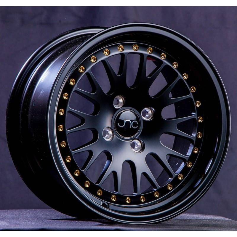 JNC Wheels Rim JNC001 Matte Black Gold Rivets 17X9 4X100/4x114.3 ET20