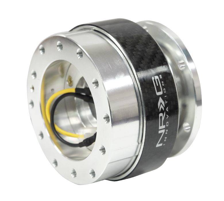 The SRK-100CF is designed for race and street application. By allowing the user to remove and replace aftermarket steering wheels from the attached hub quickly, this product can deter theft, allow quick entry and exit to the vehicle, or even allow a more comfortable steering wheel position for the driver. Features a silver body with carbon fiber chrome ring for the NEXT GENERATION styling to any vehicle. Ball-Lock type mechanism for best locking fit and usability. Also features push pin for prevention of premature unlocking. Made from the highest quality aluminum for maximum durability and usability. To attach, simply pull the ring towards the steering wheel and locks with self index mechanism.