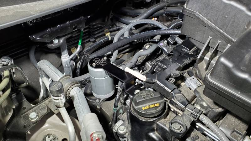 During the process of venting crankcase pressure back through your intake track, large amounts of oil, in the form of vapors can gather/accumulate in your intake tube, intake manifold runners and even dilute your gas, lowering its octane level. This happens on all engines and is even worse with forced inducted vehicles (supercharged and turbocharged) as crankcase pressures are increased. To combat this, we have developed an oil separator of our own design. Milled from solid billet aluminum this is a rock-solid piece. It has a knurled tank base for easy removal to drain the spent oil and an O-ring seal to prevent any leaks.