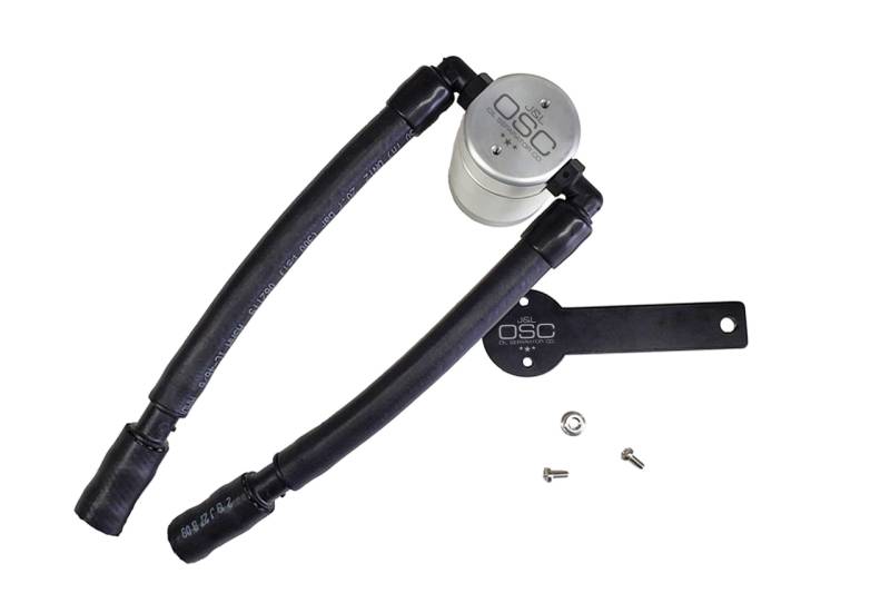 During the process of venting crankcase pressure back through your intake track, large amounts of oil, in the form of vapors can gather/accumulate in your intake tube, intake manifold runners and even dilute your gas, lowering its octane level. This happens on all engines and is even worse with forced inducted vehicles (supercharged and turbocharged) as crankcase pressures are increased. To combat this, we have developed an oil separator of our own design. Milled from solid billet aluminum this is a rock-solid piece. It has a knurled tank base for easy removal to drain the spent oil and an O-ring seal to prevent any leaks.