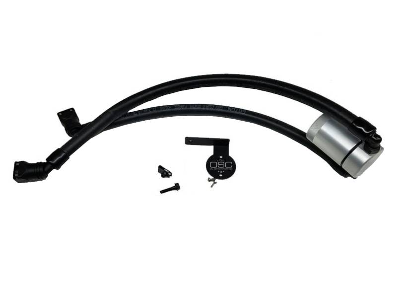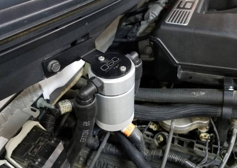 During the process of venting crankcase pressure back through your intake track, large amounts of oil, in the form of vapors can gather/accumulate in your intake tube, intake manifold runners and even dilute your gas, lowering its octane level. This happens on all engines and is even worse with forced inducted vehicles (supercharged and turbocharged) as crankcase pressures are increased. To combat this, we have developed an oil separator of our own design. Milled from solid billet aluminum this is a rock-solid piece. It has a knurled tank base for easy removal to drain the spent oil and an O-ring seal to prevent any leaks.
