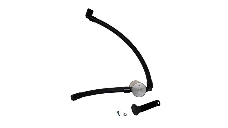 During the process of venting crankcase pressure back through your intake track, large amounts of oil, in the form of vapors can gather/accumulate in your intake tube, intake manifold runners and even dilute your gas, lowering its octane level. This happens on all engines and is even worse with forced inducted vehicles (supercharged and turbocharged) as crankcase pressures are increased. To combat this, we have developed an oil separator of our own design. Milled from solid billet aluminum this is a rock-solid piece. It has a knurled tank base for easy removal to drain the spent oil and an O-ring seal to prevent any leaks.
