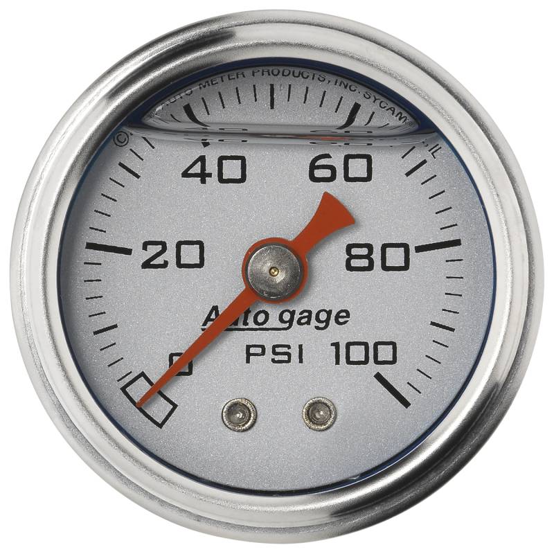 AutoMeter AutoGage 1.5in Liquid Filled Mechanical 0-100 PSI Fuel Pressure Gauge - Silver