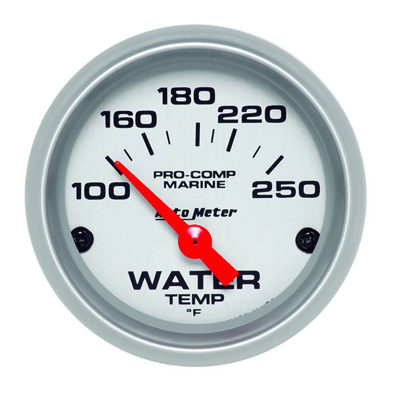 GAUGE, WATER TEMP, 2 1/16" , 100-250 Degrees F, ELECTRIC, MARINE SILVER