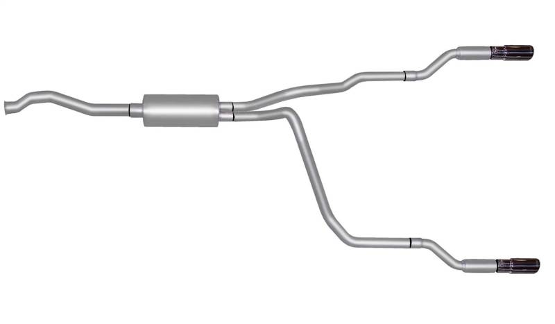 For the enthusiast who wants an awesome look and aggressive throaty sound this Dual Split Cat back exhaust is for you. Gibson Exhaust Systems decrease backpressure and produce more torque and increased horsepower. Typical gains average of 15-20 horsepower. Stainless dual Tip exit straight out the back. Works with most bumpers, roll pans and trailer hitches. Exhaust sound is louder under towing conditions. Hassle Free bolt- on installation. No welding required. Backed by a Lifetime Limited Warranty.