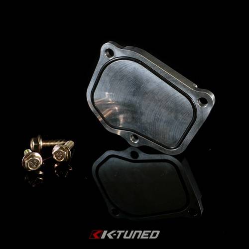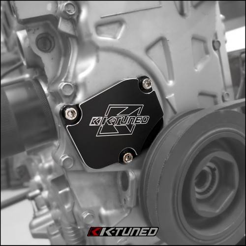 The K-Tuned Tensioner Cover Plate is machined from raw 6061 billet aluminum and comes ready to install with new hardware. To install it, remove the oem black cover and clean off all the sealer from the mounting surface for the last time. A razor blade followed by a green scotch brite pad and brake cleaner works well. After that, our bolt on plate can be installed and removed repeatedly with no sealer required