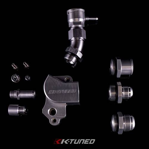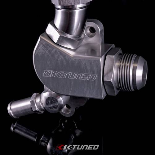 The K-Tuned Upper Coolant Housing will compliment our Swivel Neck Thermostat and our Water Pump Block off Plate. All of these parts allow plenty of options for custom and race engine cooling setups.