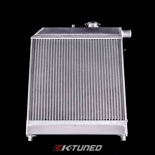 It took a couple years for us to design what we feel is the best K-series swap radiator available. Looking at current & past designs and their flaws, we finally came up with a rad design that meets our high standards. Our K-swap experience showed us that rad installs have usually required relocated rad brackets or modification to the rad itself. Not anymore! The K-Tuned Passenger radiator drops right into the oem passenger side location and requires zero modifications to make it fit. The kit includes our high quality aluminum rad, a set of our custom fitted hoses, SS T-bolt clamps, and a slim design rad fan with mounting ties.