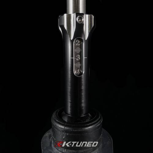 We released our original B/D Shifter back in 2012. Since then we have released three different versions. We have also made some small changes to update the design over the years. Now, in 2019 we have overhauled the three designs. Starting at the bottom we have replaced the white plastic cage that holds the ball with a Delrin bushing. Delrin is used as it is one of the strongest plastics available, it is resistant to chemicals which is great for automotive applications. Delrin also has high abrasive resistance and low coefficient of friction which basically means it will shift smoothly when you first get it and for a long time. This will give you a tighter feel than the original accordion style plastic housing used on OEM shifters. The Delrin bushing is covered with a TPV bushing to keep it clean and anything from inside the bearing. We have replaced the stamped steel base plate with a 0.35" aluminum plate which will be sturdier and not rust over time. This aluminum plate will also add to the rigidity and feel of the shifter. Since this is what holds the bearing assembly we have found the stock plate to have play, be rotted, or not even there if using new aftermarket linkage. We have also added one more threaded hole to increase the rigidity further and triangulate the assembly. Now, this all wrapped around the redesigned lower shaft. We have maintained the adjustable throw from our original shifter but made it adjustable from inside the car. The 6061 aluminum black anodized lower adjustment shaft is machined with notched section to make it easy to spin up or down to adjust the throw. We have machined a sight hole to make adjustment clear and easily measured using the numbered steel internal shaft.