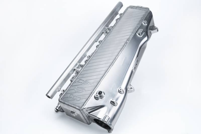 With over 1500 hours of design development machining and testing CSF along with partners VF Engineering (USA) and Custom Plenum Creations (Australia) has now brought a state-of-the-art CNC machined high-performance Charge-Air Cooler Manifold to the B58 platform (Mk5 Supra and BMW models). This product solves what has been commonly known as a weak link of an otherwise impressive new engine platform. With the larger and more efficient water-to-air intercooler performance lower pressure drop across the system included fuel rail kit for top feed port injection and several other industry-leading features the CSF Super Manifold will allow B58 owners to maximize the performance of their vehicles and push the limits further than what has been previously possible with this new platform.; The newer 2nd gen B58 engine found in the Mk5 Supra has already been proven to be an incredible platform for performance enthusiasts - taking the performance and motorsports industry by storm in just a couple of years since its release. Customers are now pushing through the 1000whp mark on their B58 powered vehicles with the CSF manifold. The OEM water-cooled charge air cooler intake manifold for the B58 engine is adequate in cars with little or no modifications but starts to really show its weakness in cars with bolt-on mods turbo upgrades increased fueling (such as port injection) and performance tuning. The OEM intercooler system has also been known to suffer from heat soak in demanding racing conditions such as time attack endurance racing drag racing drifting and even spirited street driving. This can cause the car to pull timing out of the engine due to high intake air temperatures (IATs) and can cause "limp mode" once temperatures reach a certain threshold as the vehicle's ECU attempts to protect the engine.; The CSF #8200 comes in a raw billet aluminum finish. Also available in Thermal Black Heat Dispersion (CSF #8200B) & in custom colors/finishes (CSF #8200C).