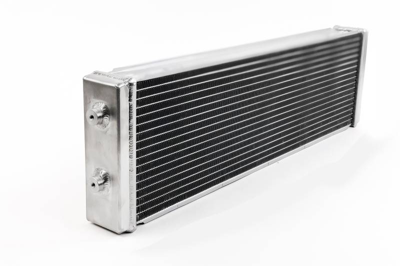 The ultimate universal dual-pass cross flow heat exchanger is the ideal option for you custom project. This cooler can be used as an Air-to-Water Intercooler Heat Exchanger Small Radiator or Auxiliary Radiator. The dual 3/4 inch (19mm) slip on connections allow for easy fluid line connections. Can be mounted in any orientation.