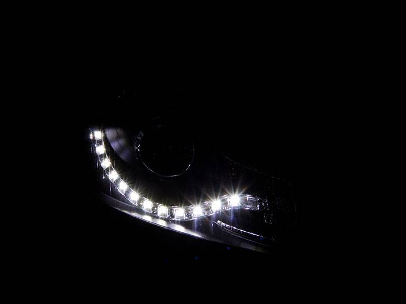 Projector Headlight Set, Clear Lens, Black Housing, Pair, R8 Style, For Use w/Non HID Models Only Guaranteed To Improve Your Vehicles Appearance. Rigorously Tested For Fit And Function. Simple Plug And Play. No Modifications Required. Easy Installation Using Common Hand Tools. Uses Stock Mounting Locations And Hardware. D.O.T. Compliant To S.A.E. Standards. Sold As A Pair. 8P Body Type Only. Does Not Fit Models With Factory HID Bulbs.