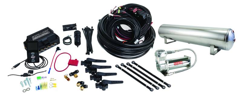 Air Lift Performance 3H .25in Air Line, 4 Gallon 5-Port Lightweight Polished Aluminum Tank, VIAIR 444C Compressor