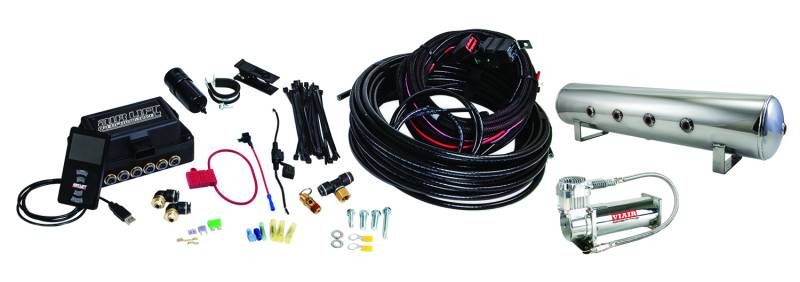 Air Lift Performance 3P .375in Air Line, 4 Gallon 7-Port Lightweight Polished Aluminum Tank, VIAIR 444C Compressor