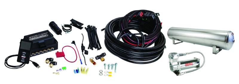 Air Lift Performance 3P .25in Air Line, 4 Gallon 5-Port Lightweight Polished Aluminum Tank, VIAIR 444C Compressor