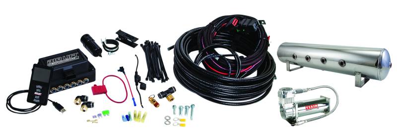 Air Lift Performance 3P .25in Air Line, 4 Gallon 7-Port Lightweight Polished Aluminum Tank, VIAIR 444C Compressor