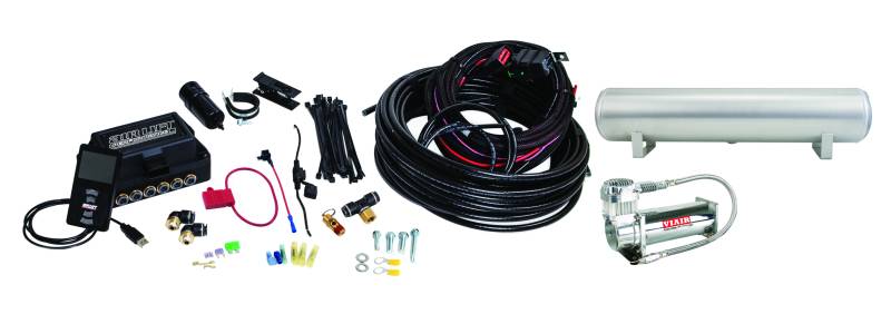 Air Lift Performance 3P .25in Air Line, 4 Gallon 5-Port Lightweight Raw Aluminum Tank, VIAIR 444C Compressor