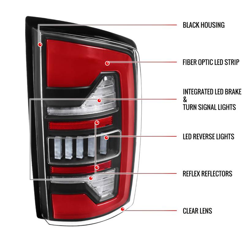 Spec-D 2007-2009 Dodge RAM 1500/2500/3500 Red LED Bar Tail Lights (Matte Black Housing/Clear Lens)