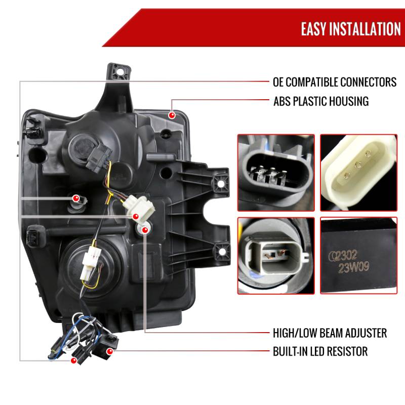 - Comes with (1) pair of matte black housing with smoke lens projector headlights