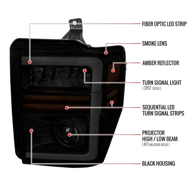 2008-2010 Ford F-250/F-350/F-450/F-550 Super Duty Projector Headlights w/ LED Sequential Turn Signal (Matte Black Housing/Smoke Lens)