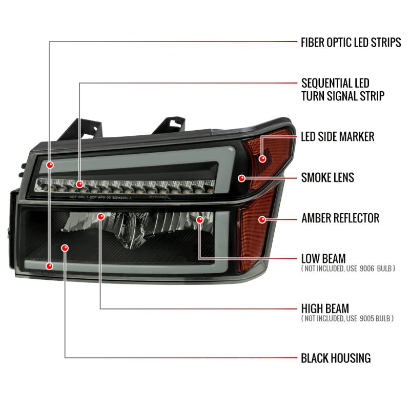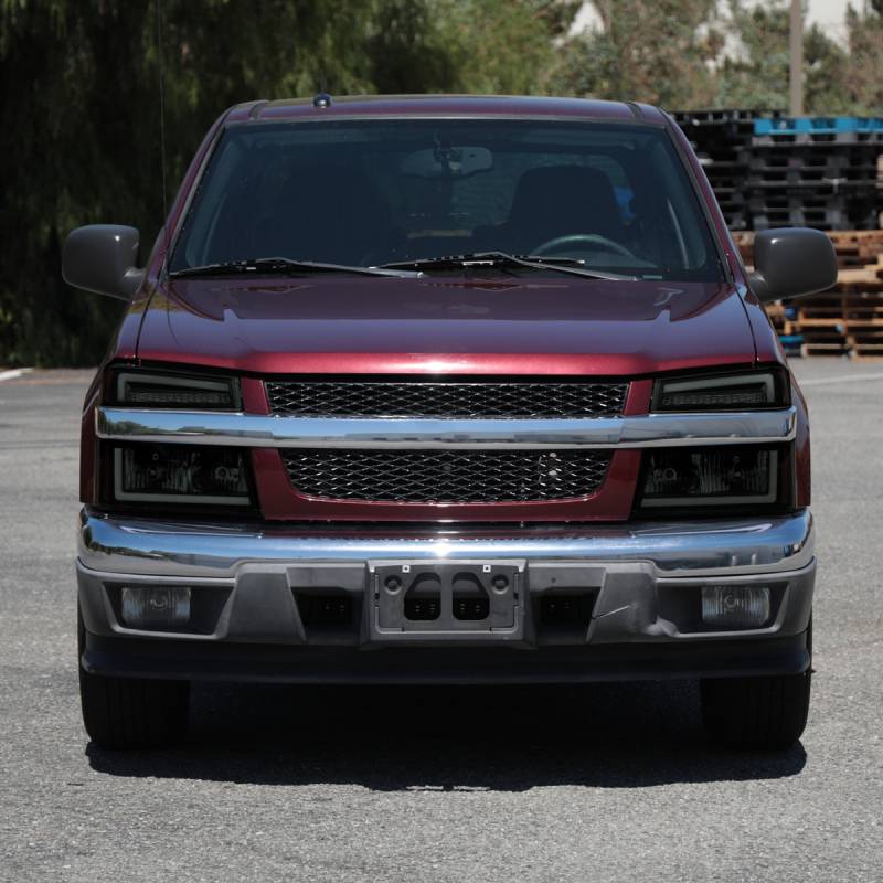 2004-2012 Chevrolet Colorado GMC Canyon/2006-2008 ISUZU I-Series Sequential Turn Signal Factory Style Headlights with LED Bar (Matte Black Housing/Smoke Lens)