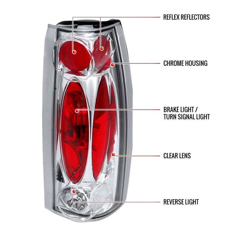 - Comes with 1 pair of chrome housing clear lens tail lights